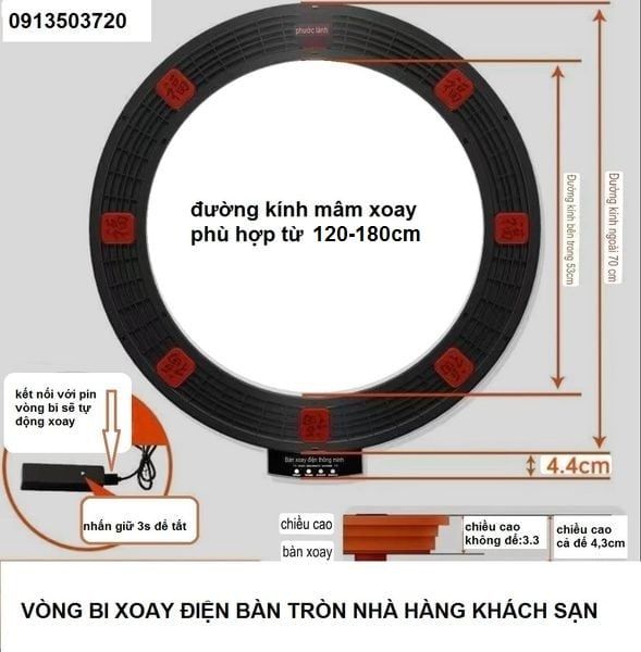 Vòng bi mâm xoay điện tự động pin sạc , đế xoay bàn tròn nhà hàng,khách sạn