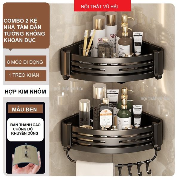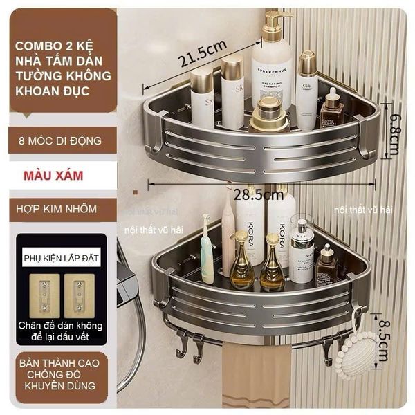 (MÀU XÁM CÓ TREO KHĂN)Kệ góc dán tường bản cao 6.8cm