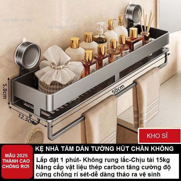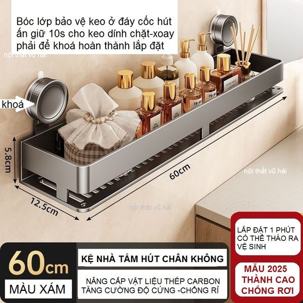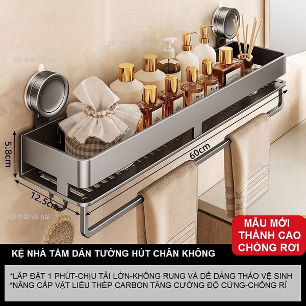 Kệ nhà tắm 30-40-50-60 CM dán tường hút chân không-lắp đặt 1 phút