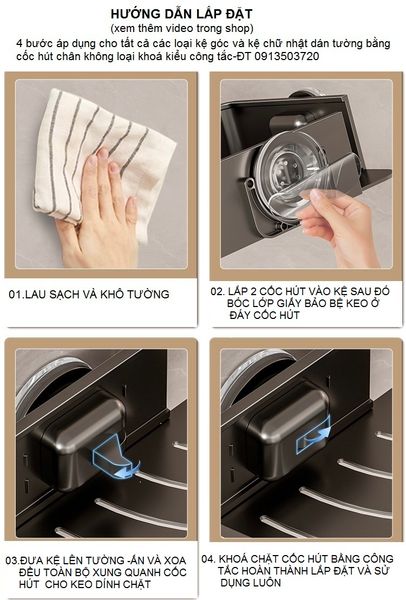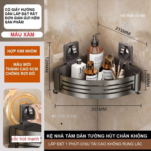 Kệ nhà tắm dán tường hút chân không-lắp đặt 1 phút